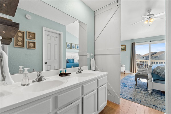 Primary bathroom with dual vanity